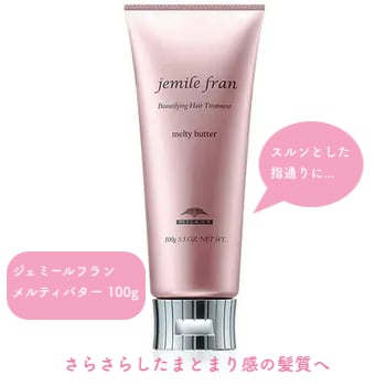 毎日忙しいあなたのための洗い流さないトリートメント、ジェミールフラン メルティバター!このクリームタイプのヘアトリートメントは、髪をしっかりと保湿し、艶やかでまとまりのある美しい仕上がりへ導いてくれます。